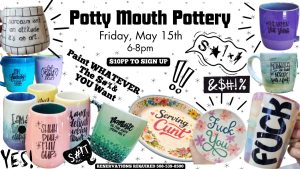 So grab your crew, bring your attitude, and come paint some bold, offensive, funny as f*ck pottery.